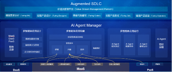 综合考虑业界对AI Native应用的期望,以及影响AI Native重构软件产品的三个关键要素,304am永利集团给出AI Native使能技术体系方案:包括模型即服务MaaS平台,用于提供高级智能(AGI)服务的功能;多智能体MAS系统,基于MaaS平台能力重构现有应用,并通过人机协同来优化任务执行;增强的软件开发生命周期(SDLC),有助于在整个开发过程中集成AI能力用以提升研发效能。